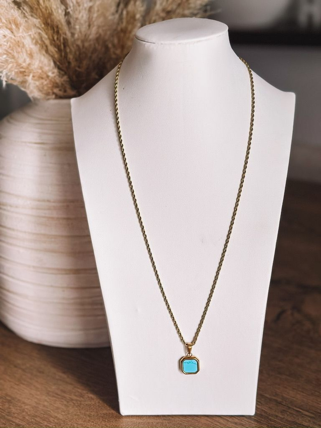 Colar Homem em aço inoxidável com a corrente na cor dourado e a pedra disponível em 4 cores.